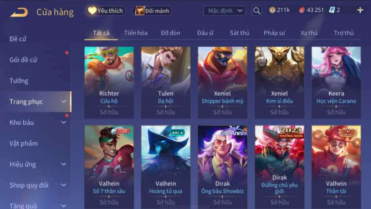 BÁN ACC LIÊN QUÂN SIÊU VIP - SKIN SS HỮU HẠN NHIỀU TƯỚNG TRÊN 500K