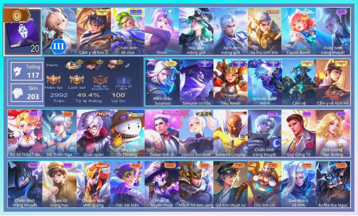BÁN ACC LIÊN QUÂN SIÊU VIP - SKIN SS HỮU HẠN NHIỀU TƯỚNG TRÊN 500K
