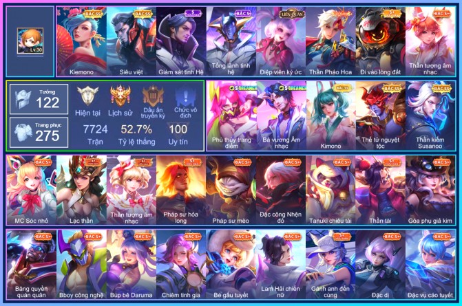 BÁN ACC LIÊN QUÂN SIÊU VIP - SKIN SS HỮU HẠN NHIỀU TƯỚNG TRÊN 500K