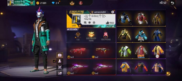 ACC VIP 3 TỤT VIPPP+MÃNG XÀ LV3+2 KHẨU LV 2+QUẦN ÁO SIÊU ĐẸP CHO ANH EM