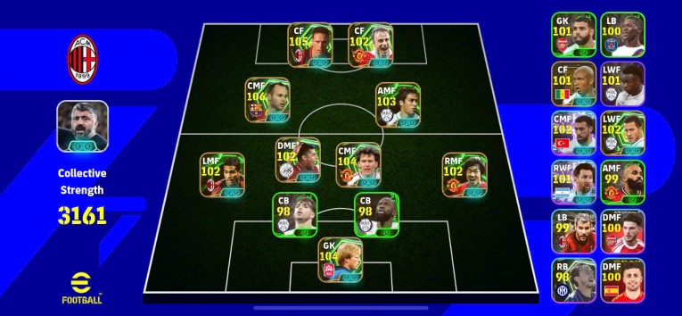 Van Basten 105 2 hột, Berbatov 102 2 hột, Inesta 106 2 hột, Raul 103 2 hột, Rijkaard 2 hột, Robson 104 2 hột, Park Ji Sung 102 2hôt, GK Oliver Kah 104 2 hột , .... + HLV 2 hột