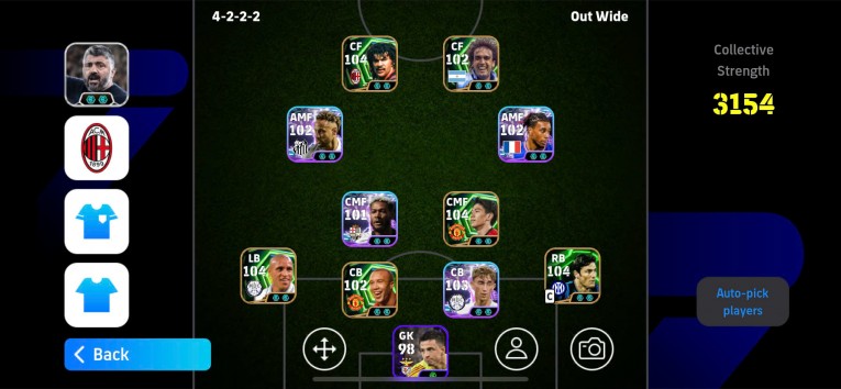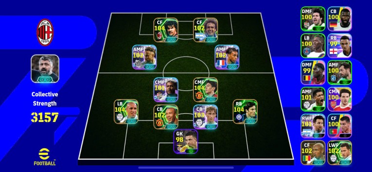 Gullit 106, Battistuta 102, Kagawa 105, Neymar showtime blitz, Olise blitz, Caslos 105, Silvertre 102, Hujisen show time 103, Zanetti 104,....+HLV 2 hột