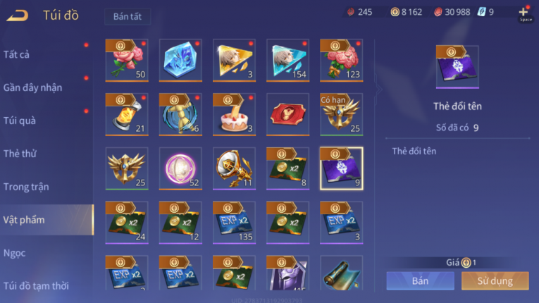 tulen SS, 9 thẻ đổi tên, ngọc 90