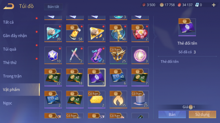 2 SS, flo7+tinh hệ, 4 s+ hh, 3 thẻ đổi tên, ngọc 90