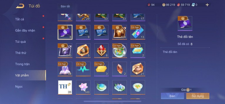 2 SS, butterfly lv4, 8 thẻ đổi tên, 6 đá quý, ngọc 90