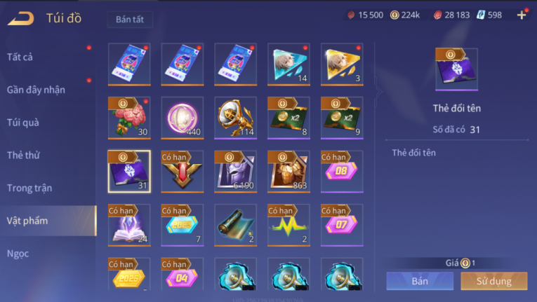 4 SS, 31 thẻ đổi tên, ngọc 90
