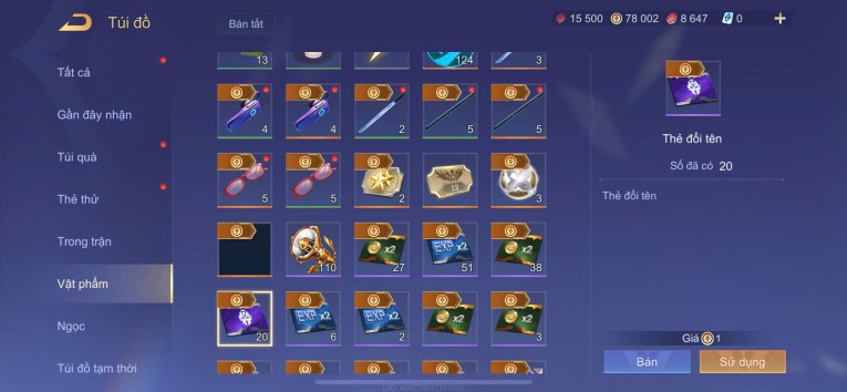 violet SS, 20 thẻ đổi tên, ngọc 90