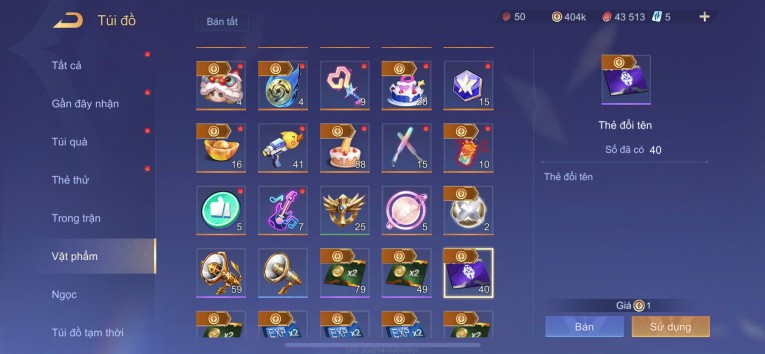 3 SS, flo7, butterfly lv3, 40 thẻ đổi tên, ngọc 90