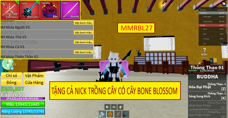 BÁN ACC ROBLOX BLOXFRUITS GIÁ 100K ĐẾN 500K