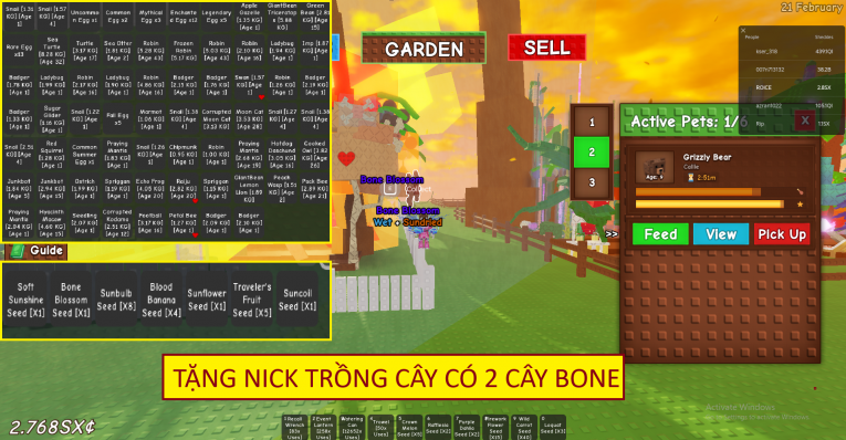 nổi bật: TẶNG CẢ NICK TRỒNG CÂY CÓ 2 CÂY BONE BLOSSOM