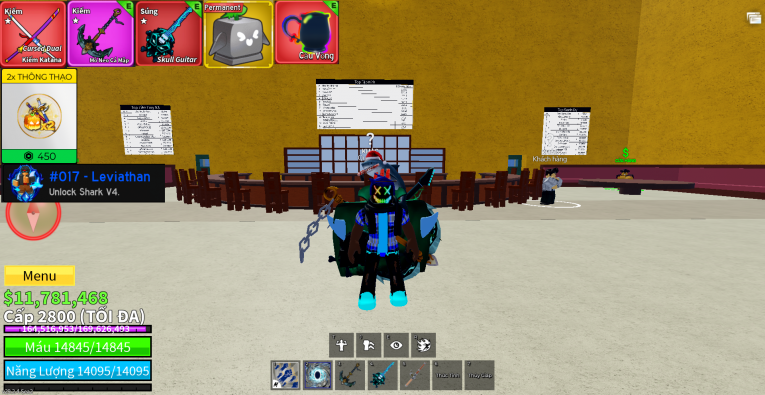 nổi bật: song đao , skull guitar , mỏ neo , 1 trái vv , 1 gamepass , cá v4