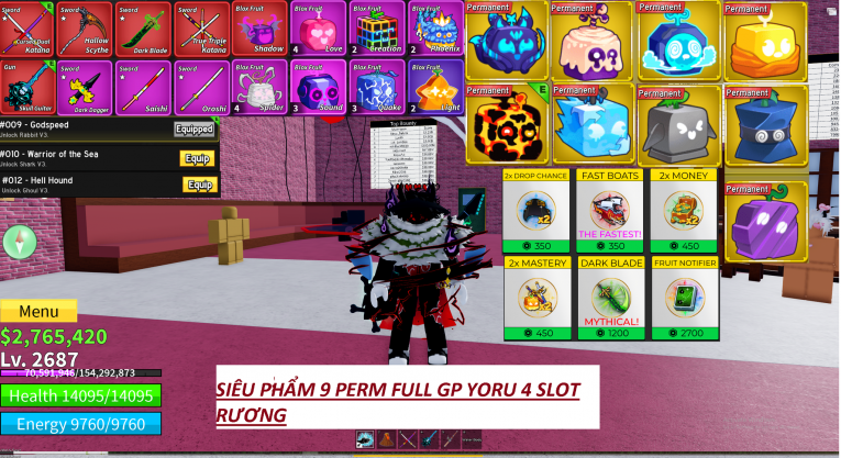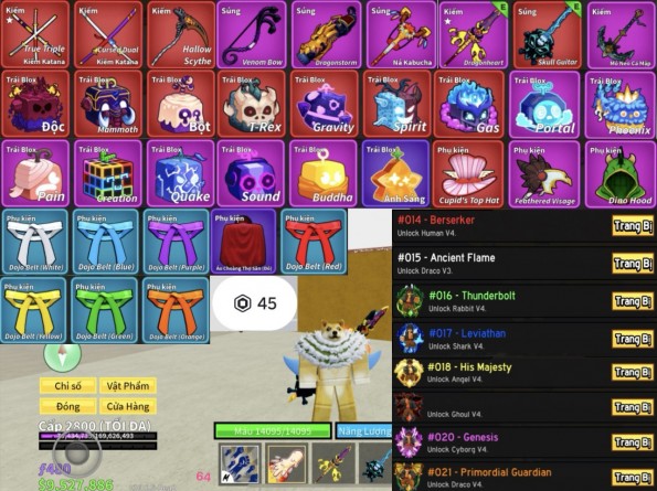 Tất cả acc đều đăng nhập đổi mật khẩu ngay, cam kết nick sạch – không khóa – không gian lận, hỗ trợ nhiệt tình nếu phát sinh vấn đề. Shop luôn cập nhật acc mới mỗi ngày, đảm bảo uy tín – an toàn – tiện lợi cho khách hàng mua acc Blox Fruits.