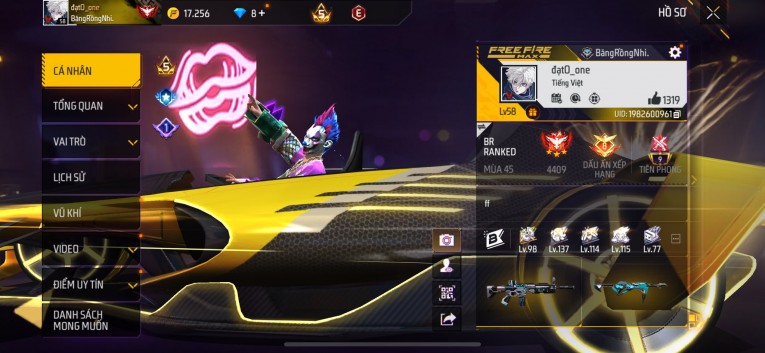 BÁN ACC FREEFIRE SIÊU PHẨM - VIP 8 GIÁ TRÊN 1 TRIỆU
