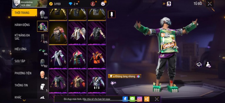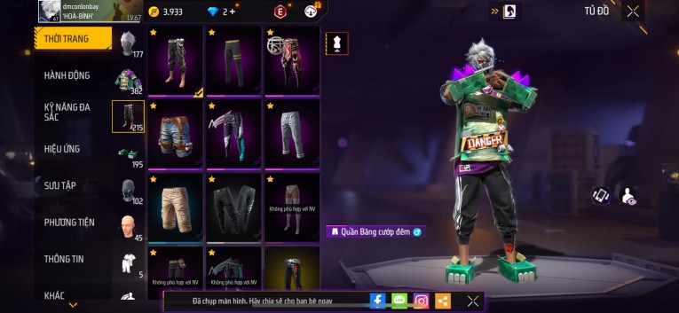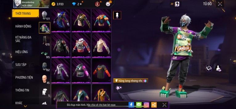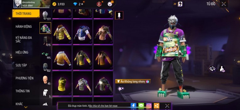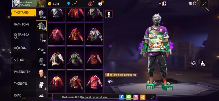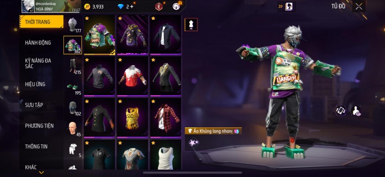 Acc chơi lâu, nhiều skin súng xịn, đầy đủ áo và phụ kiện nam. Đồ đủ dùng, đẹp mắt – vào chơi là chiến ngay!