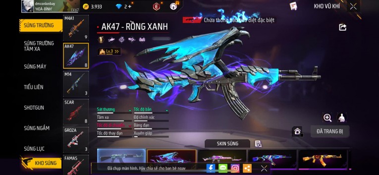 Phù hợp anh em thích skin đẹp, súng mạnh, acc ổn định.