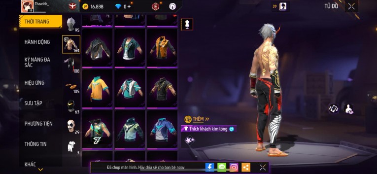 Acc siêu phẩmchơi lâu, nhiều skin súng xịn, đầy đủ áo và phụ kiện nam. Đồ đủ dùng, đẹp mắt – vào chơi là chiến ngay!