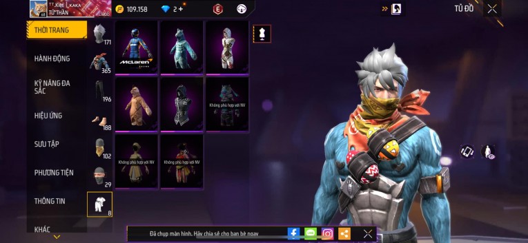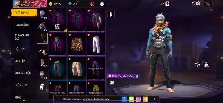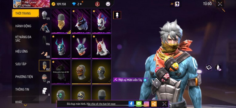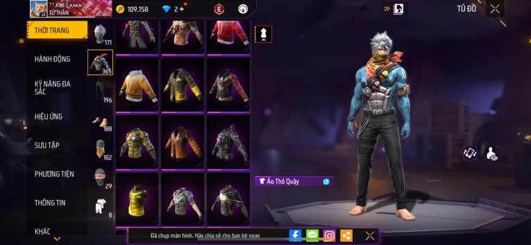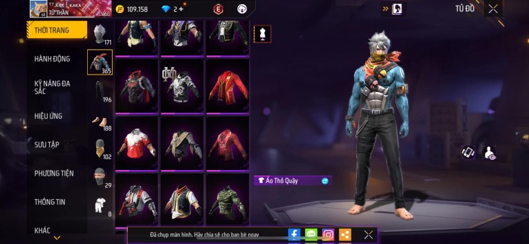 Acc chơi lâu, nhiều skin súng xịn, đầy đủ áo và phụ kiện nam. Đồ đủ dùng, đẹp mắt – vào chơi là chiến ngay!