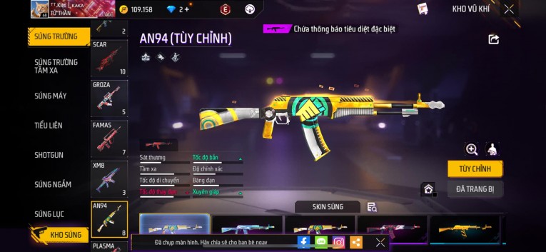 Phù hợp anh em thích skin đẹp, súng mạnh, acc ổn định.