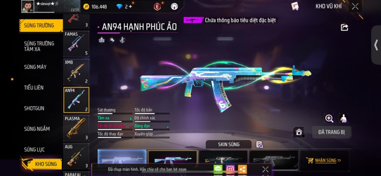 Phù hợp anh em thích skin đẹp, súng mạnh, acc ổn định.