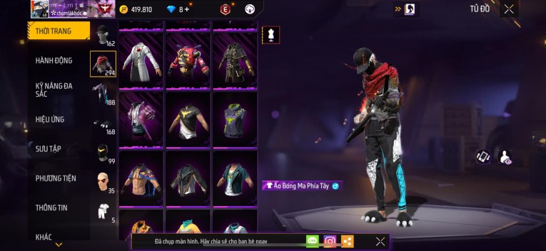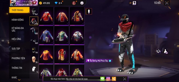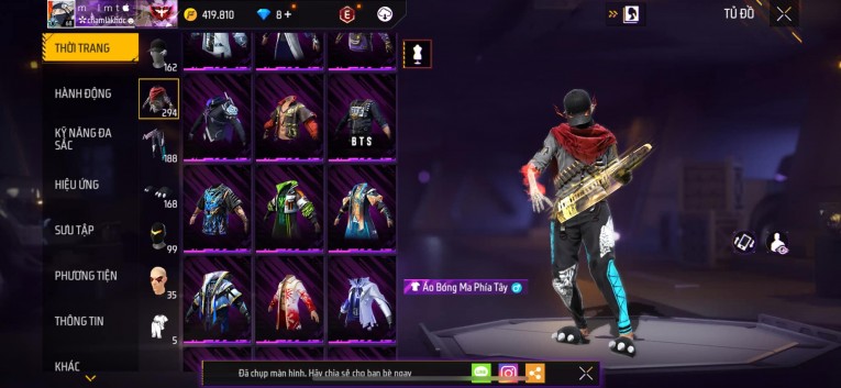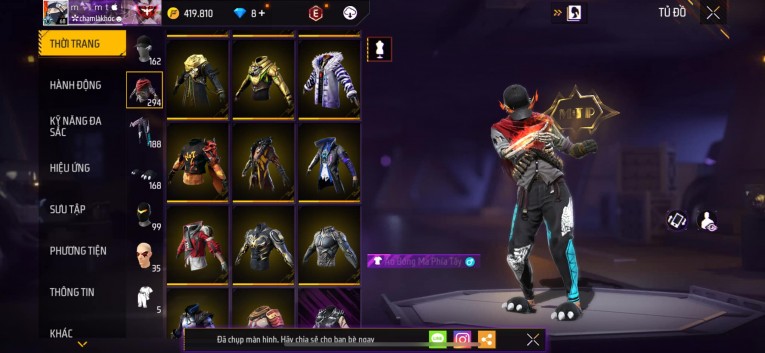 Acc chơi lâu, nhiều skin súng xịn, đầy đủ áo và phụ kiện nam. Đồ đủ dùng, đẹp mắt – vào chơi là chiến ngay!
