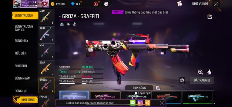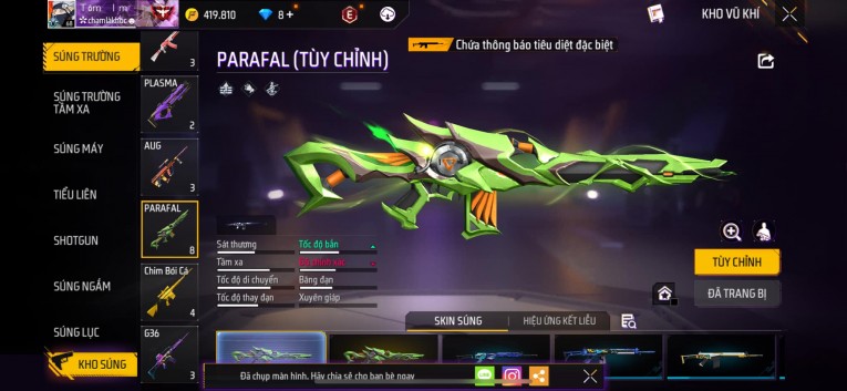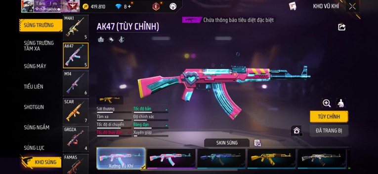 Phù hợp anh em thích skin đẹp, súng mạnh, acc ổn định.