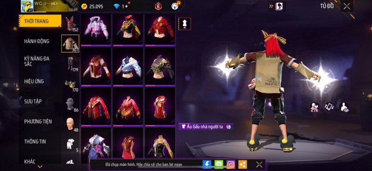 Acc chơi lâu, nhiều skin súng xịn, đầy đủ áo và phụ kiện nam. Đồ đủ dùng, đẹp mắt – vào chơi là chiến ngay!