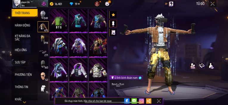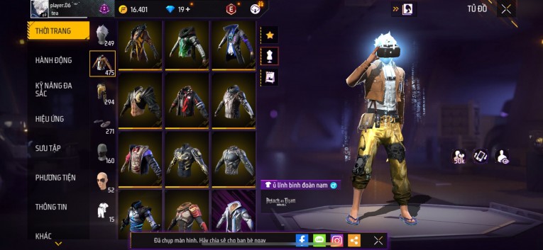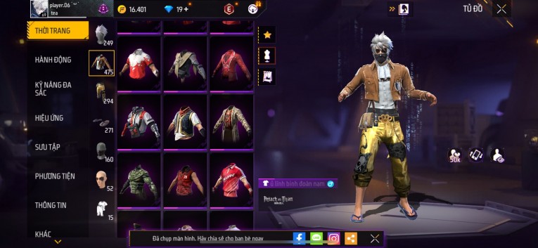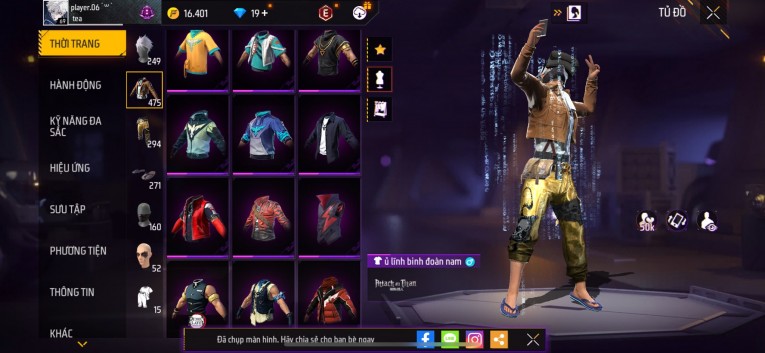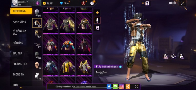 Acc chơi lâu, nhiều skin súng xịn, đầy đủ áo và phụ kiện nam. Đồ đủ dùng, đẹp mắt – vào chơi là chiến ngay!