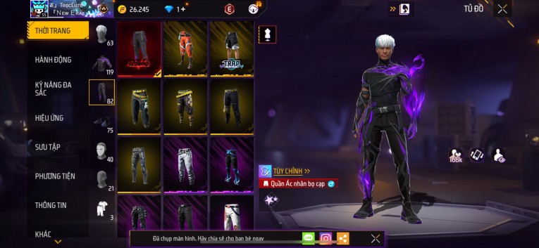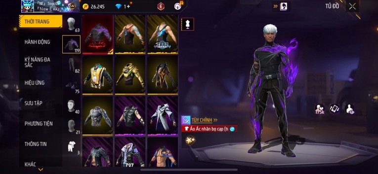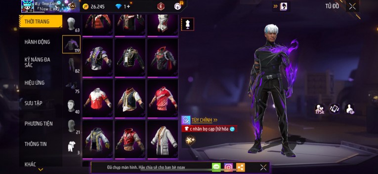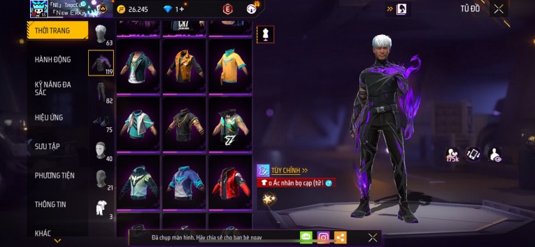 Acc chơi lâu, nhiều skin súng xịn, đầy đủ áo và phụ kiện nam. Đồ đủ dùng, đẹp mắt – vào chơi là chiến ngay! Phù hợp anh em thích skin đẹp, súng mạnh, acc ổn định.