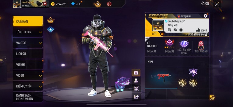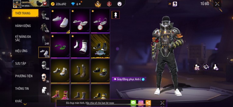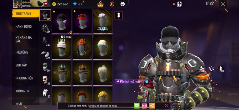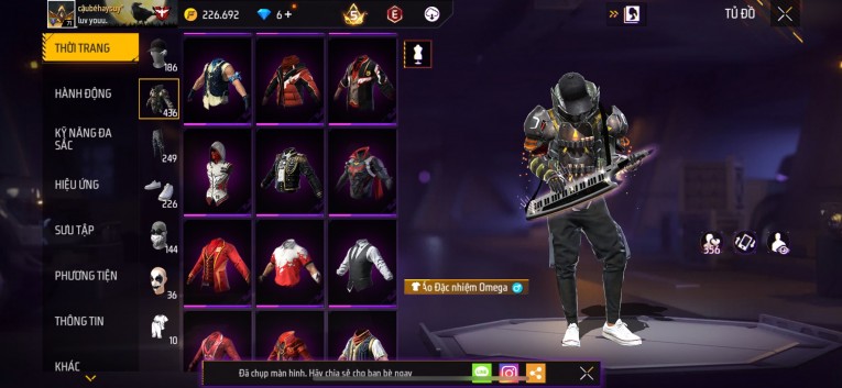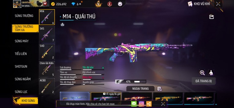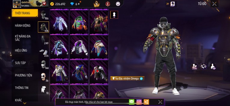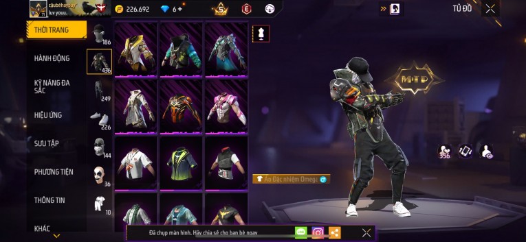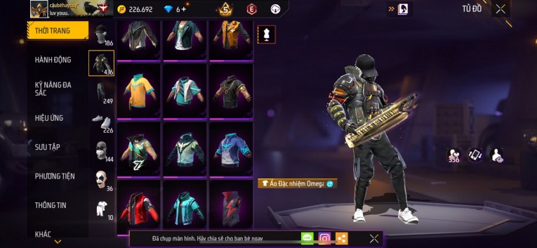 Acc chơi lâu, nhiều skin súng xịn, đầy đủ áo và phụ kiện nam. Đồ đủ dùng, đẹp mắt – vào chơi là chiến ngay! Phù hợp anh em thích skin đẹp, súng mạnh, acc ổn định.