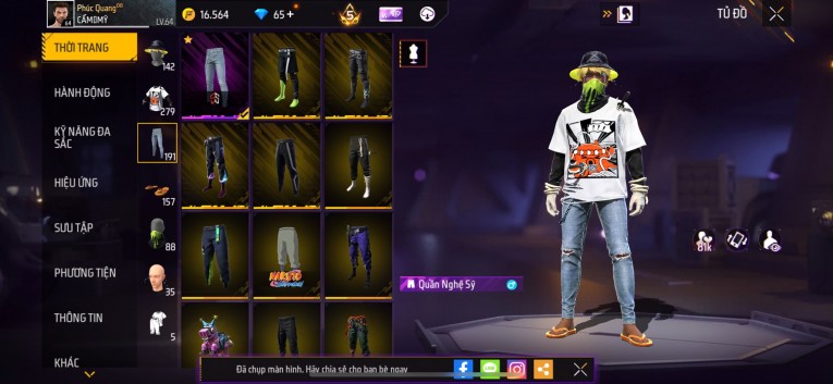 Acc chơi lâu, nhiều skin súng xịn, đầy đủ áo và phụ kiện nam. Đồ đủ dùng, đẹp mắt – vào chơi là chiến ngay!