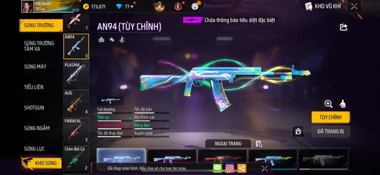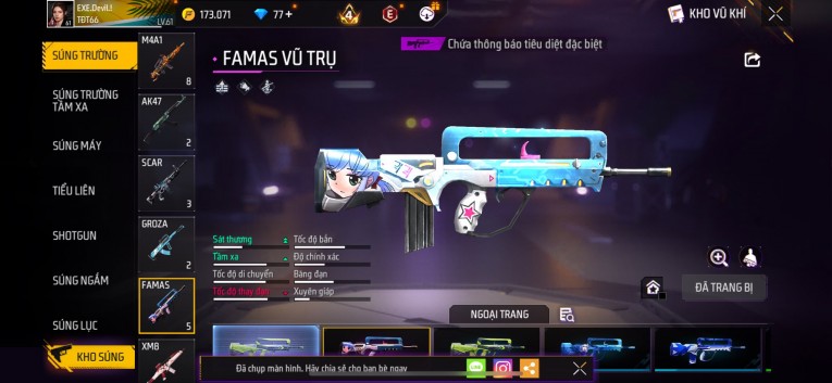 Phù hợp anh em thích skin đẹp, súng mạnh, acc ổn định.