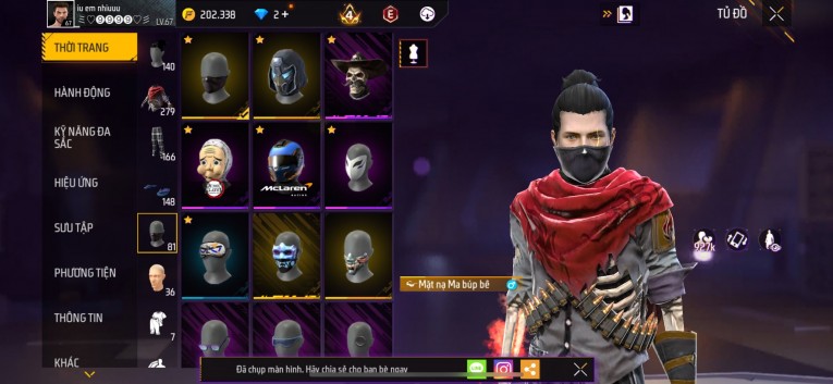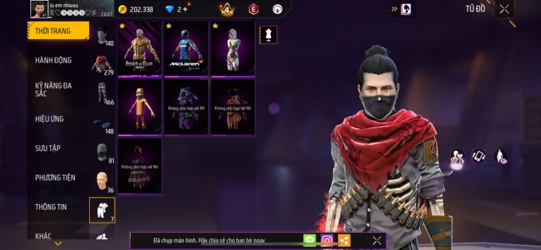 Acc chơi lâu, nhiều skin súng xịn, đầy đủ áo và phụ kiện nam. Đồ đủ dùng, đẹp mắt – vào chơi là chiến ngay!