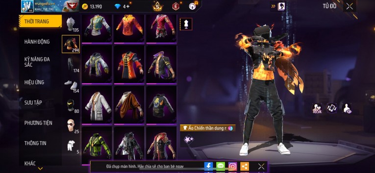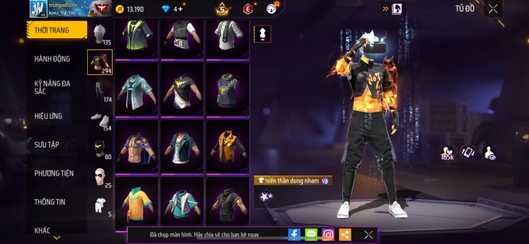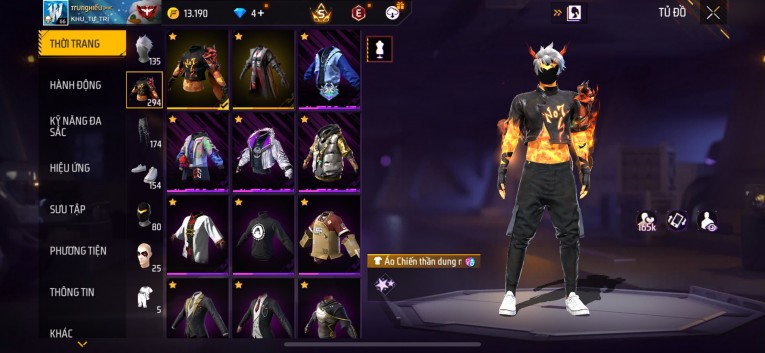 Acc chơi lâu, nhiều skin súng xịn, đầy đủ áo và phụ kiện nam. Đồ đủ dùng, đẹp mắt – vào chơi là chiến ngay!