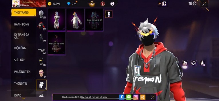 Acc chơi lâu, nhiều skin súng xịn, đầy đủ áo và phụ kiện nam. Đồ đủ dùng, đẹp mắt – vào chơi là chiến ngay!