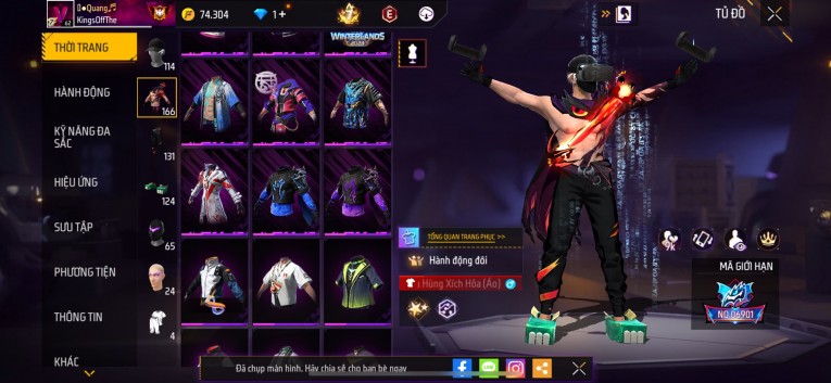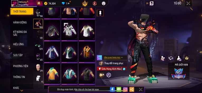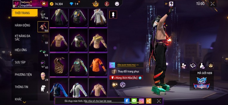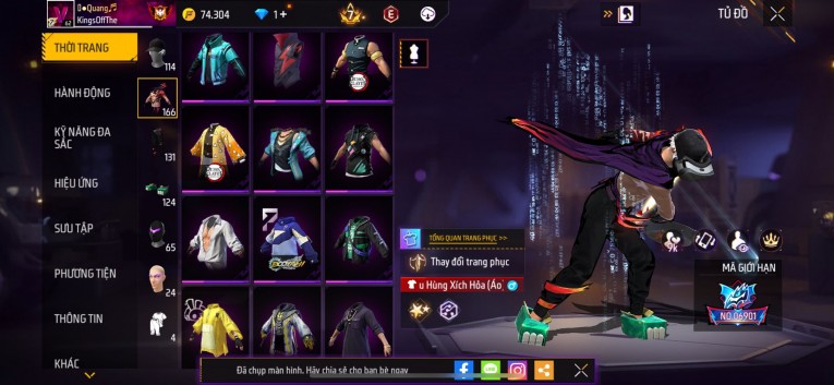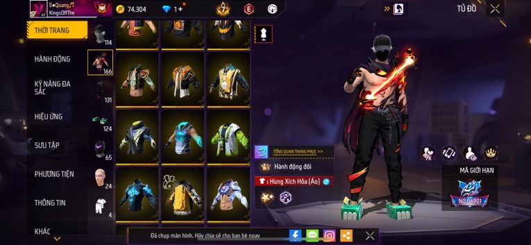 Acc chơi lâu, nhiều skin súng xịn, đầy đủ áo và phụ kiện nam. Đồ đủ dùng, đẹp mắt – vào chơi là chiến ngay!
