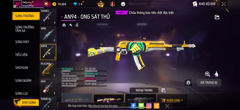Phù hợp anh em thích skin đẹp, súng mạnh, acc ổn định.