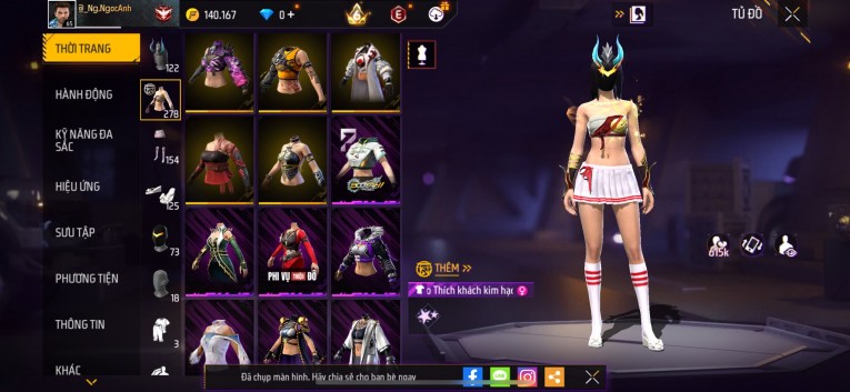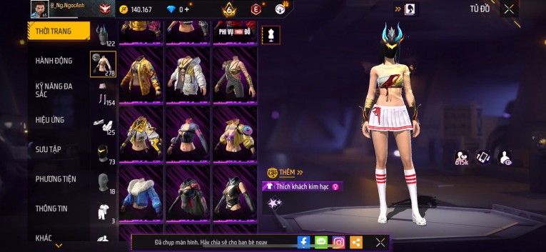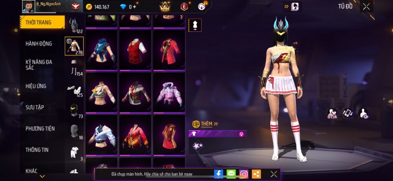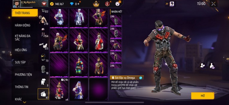 Acc chơi lâu, nhiều skin súng xịn, đầy đủ áo và phụ kiện nam. Đồ đủ dùng, đẹp mắt – vào chơi là chiến ngay!