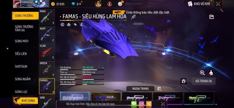 Phù hợp anh em thích skin đẹp, súng mạnh, acc ổn định.