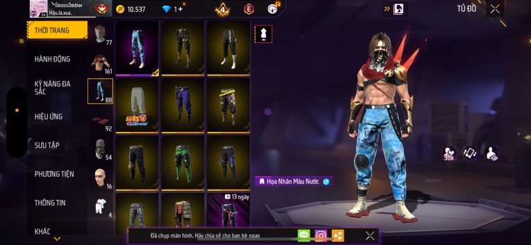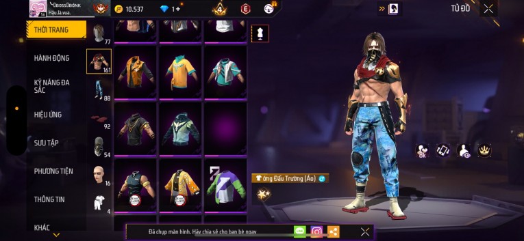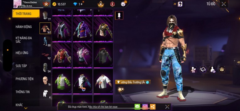 Acc chơi lâu, nhiều skin súng xịn, đầy đủ áo và phụ kiện nam. Đồ đủ dùng, đẹp mắt – vào chơi là chiến ngay!