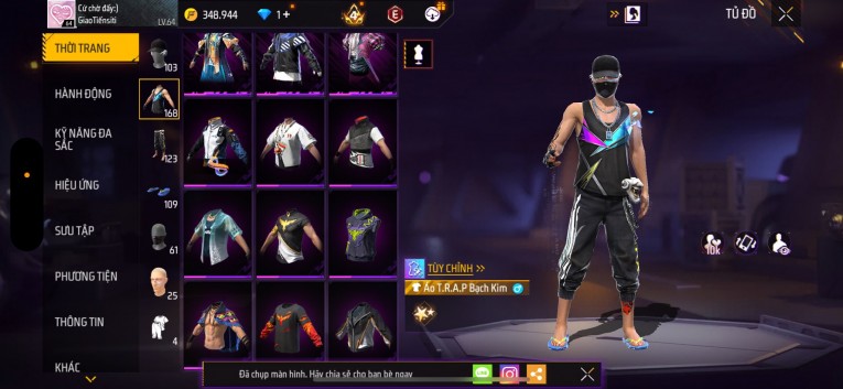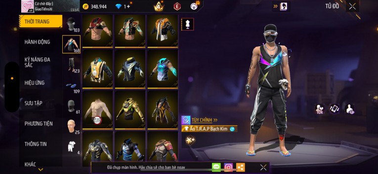 Acc chơi lâu, nhiều skin súng xịn, đầy đủ áo và phụ kiện nam. Đồ đủ dùng, đẹp mắt – vào chơi là chiến ngay!