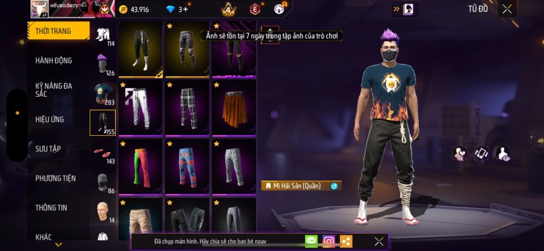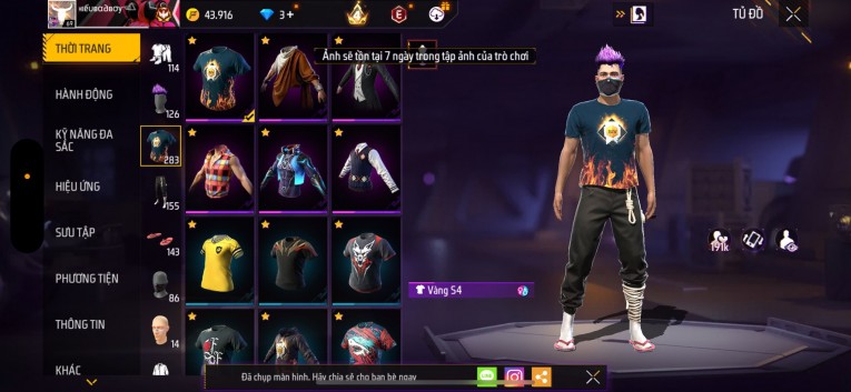 Acc chơi lâu, nhiều skin súng xịn, đầy đủ áo và phụ kiện nam. Đồ đủ dùng, đẹp mắt – vào chơi là chiến ngay!