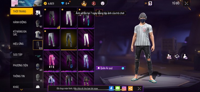 Acc chơi lâu, nhiều skin súng xịn, đầy đủ áo và phụ kiện nam. Đồ đủ dùng, đẹp mắt – vào chơi là chiến ngay!