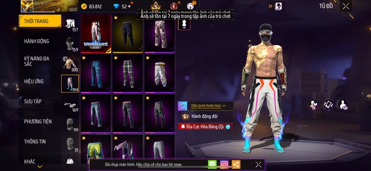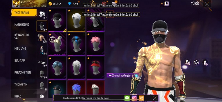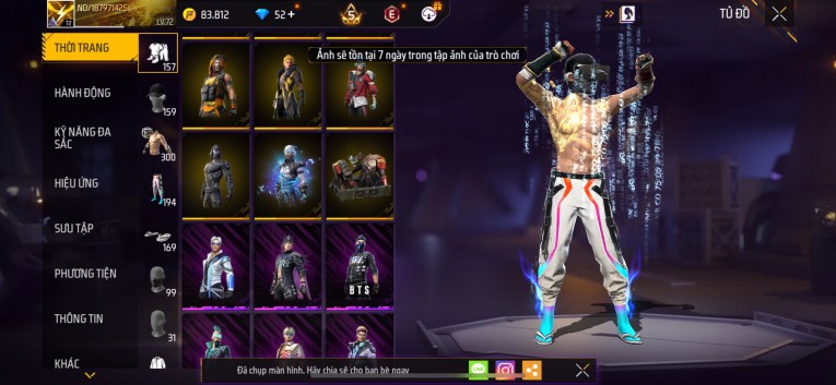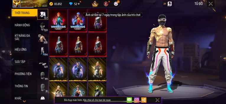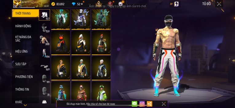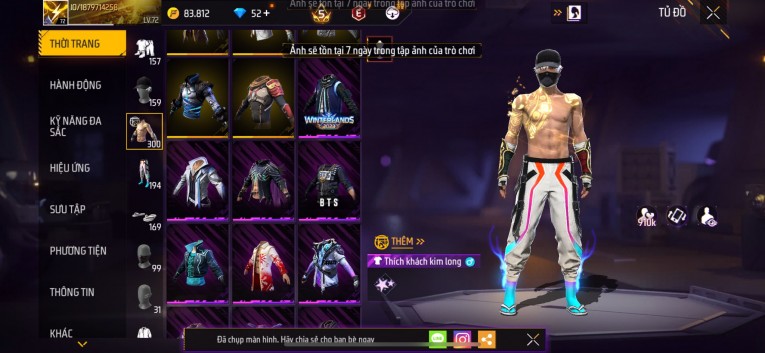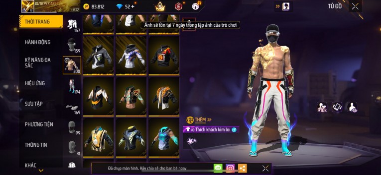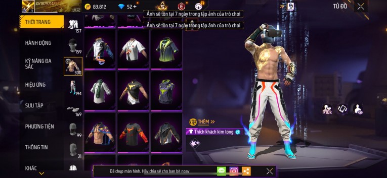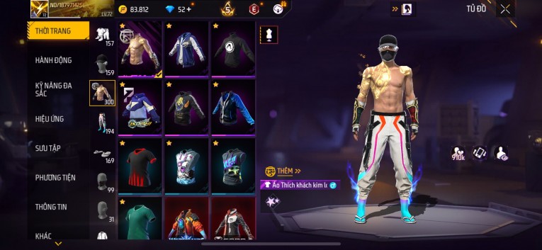 Acc chơi lâu, nhiều skin súng xịn, đầy đủ áo và phụ kiện nam. Đồ đủ dùng, đẹp mắt – vào chơi là chiến ngay!