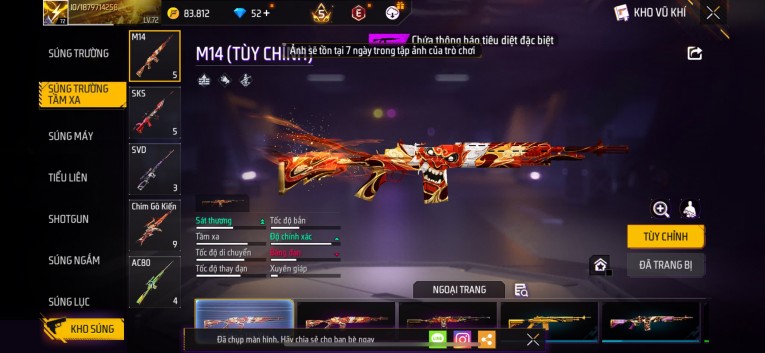 Phù hợp anh em thích skin đẹp, súng mạnh, acc ổn định.