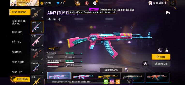 Phù hợp anh em thích skin đẹp, súng mạnh, acc ổn định.
