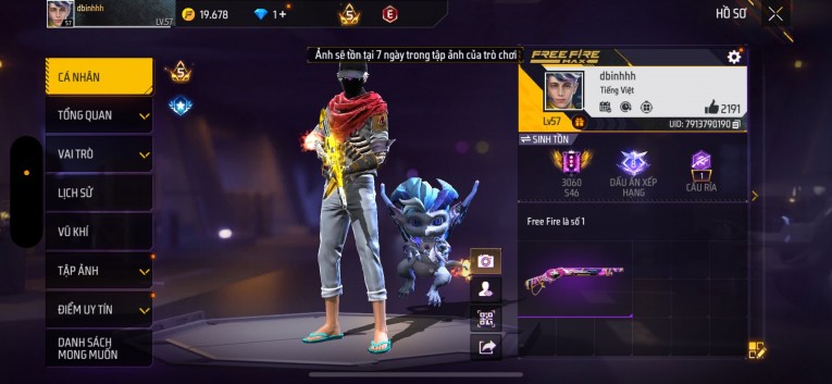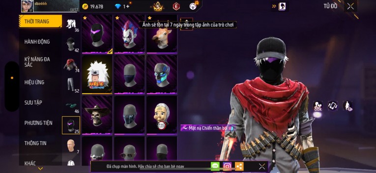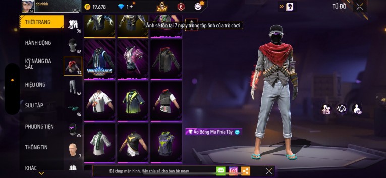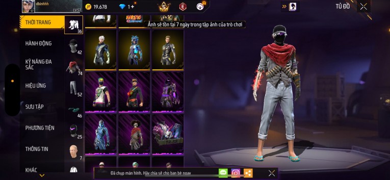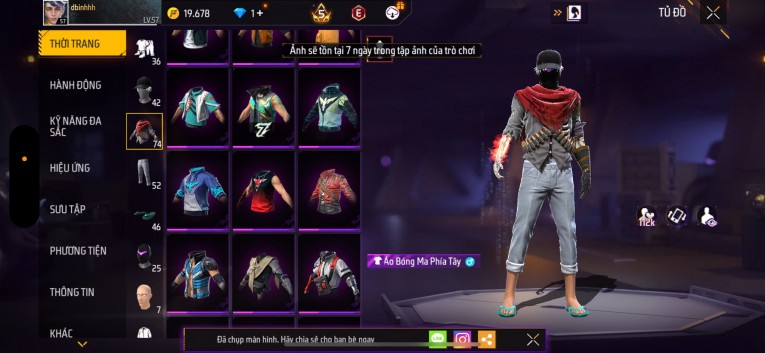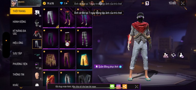 Acc chơi lâu, nhiều skin súng xịn, đầy đủ áo và phụ kiện nam. Đồ đủ dùng, đẹp mắt – vào chơi là chiến ngay! Phù hợp anh em thích skin đẹp, súng mạnh, acc ổn định.