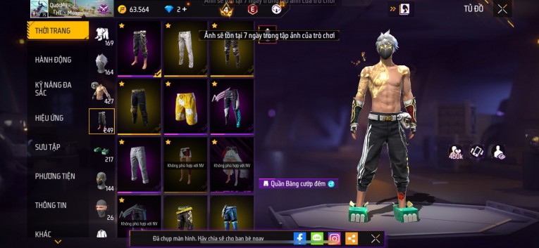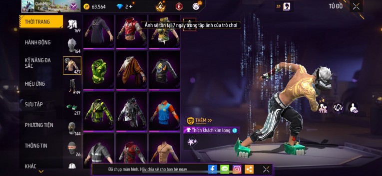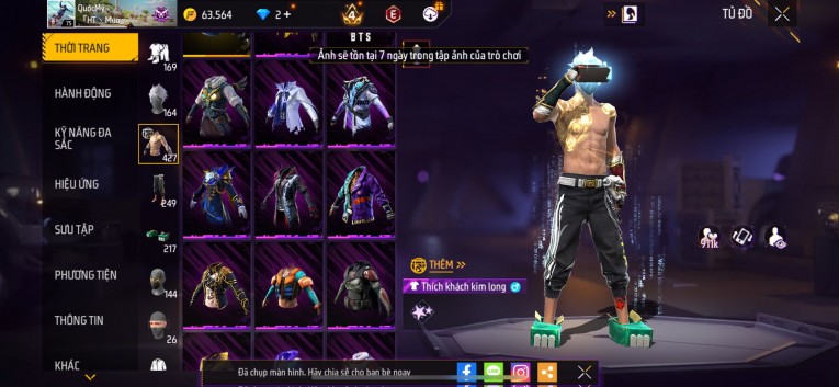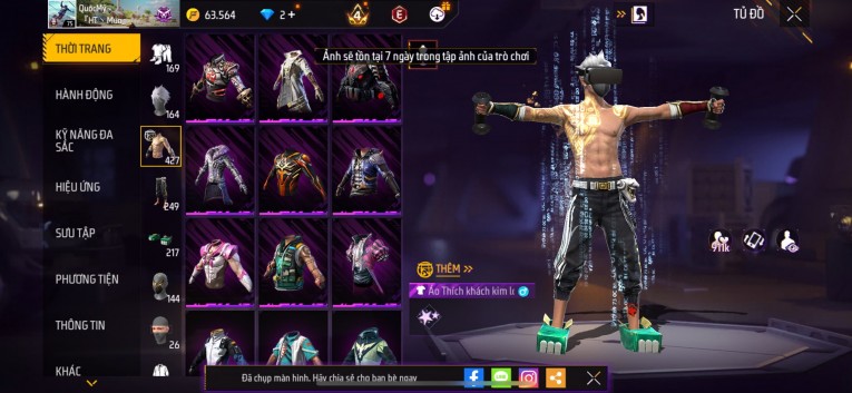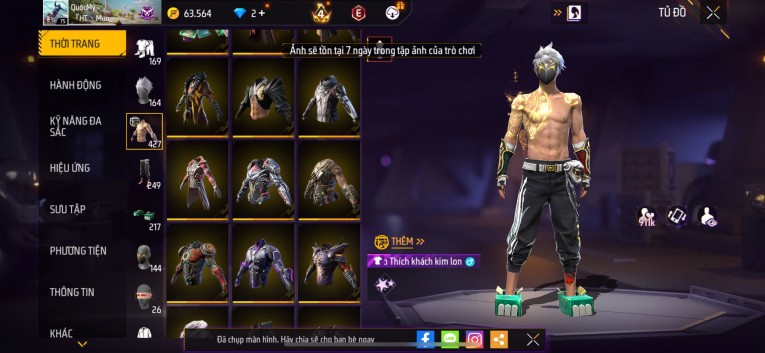 Acc chơi lâu, nhiều skin súng xịn, đầy đủ áo và phụ kiện nam. Đồ đủ dùng, đẹp mắt – vào chơi là chiến ngay! Phù hợp anh em thích skin đẹp, súng mạnh, acc ổn định.