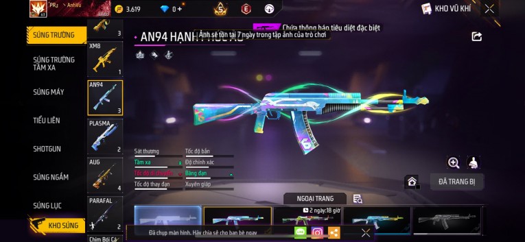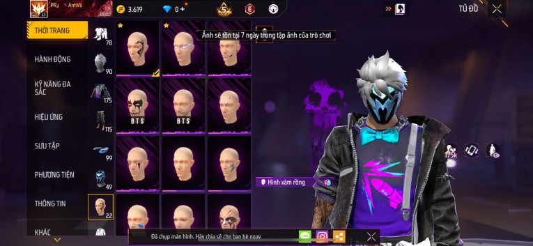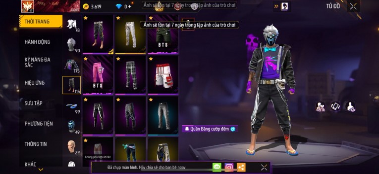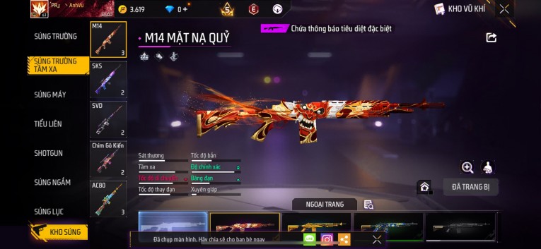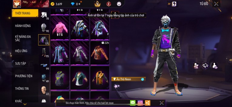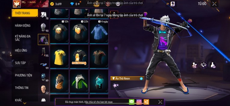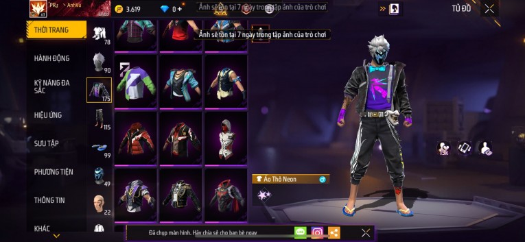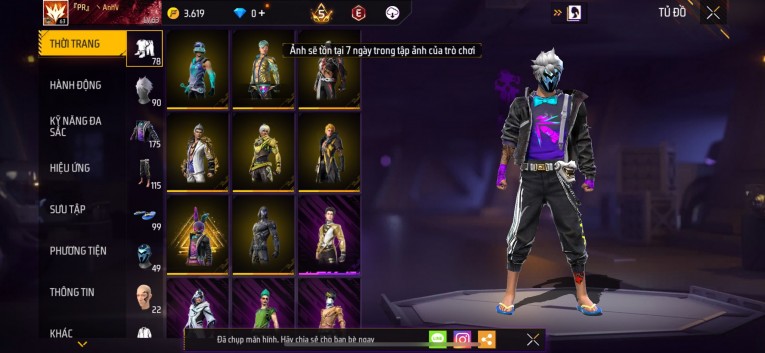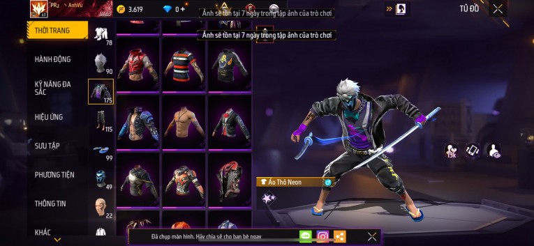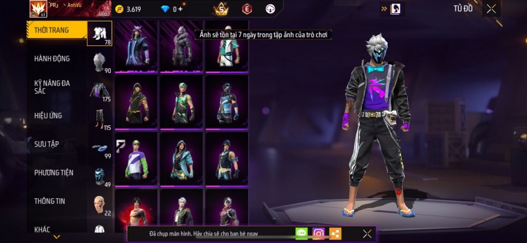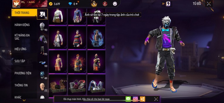Acc chơi lâu, nhiều skin súng xịn, đầy đủ áo và phụ kiện nam. Đồ đủ dùng, đẹp mắt – vào chơi là chiến ngay! Phù hợp anh em thích skin đẹp, súng mạnh, acc ổn định.