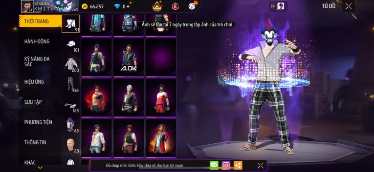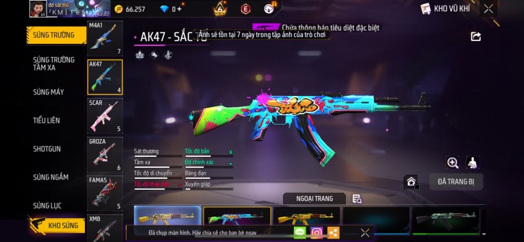 Acc chơi lâu, nhiều skin súng xịn, đầy đủ áo và phụ kiện nam. Đồ đủ dùng, đẹp mắt – vào chơi là chiến ngay! Phù hợp anh em thích skin đẹp, súng mạnh, acc ổn định.