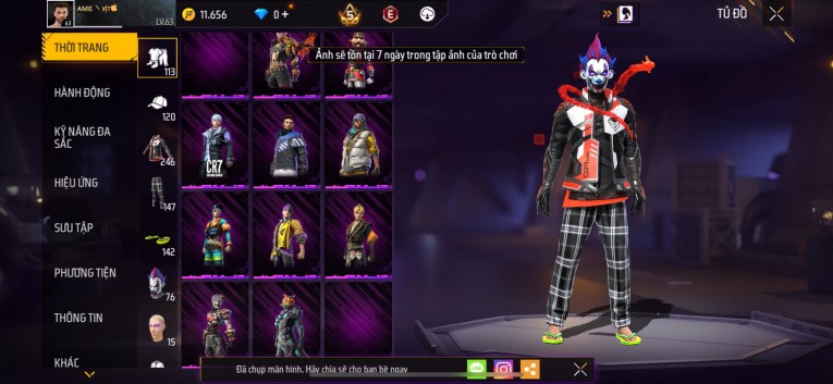 Acc chơi lâu, nhiều skin súng xịn, đầy đủ áo và phụ kiện nam. Đồ đủ dùng, đẹp mắt – vào chơi là chiến ngay! Phù hợp anh em thích skin đẹp, súng mạnh, acc ổn định.